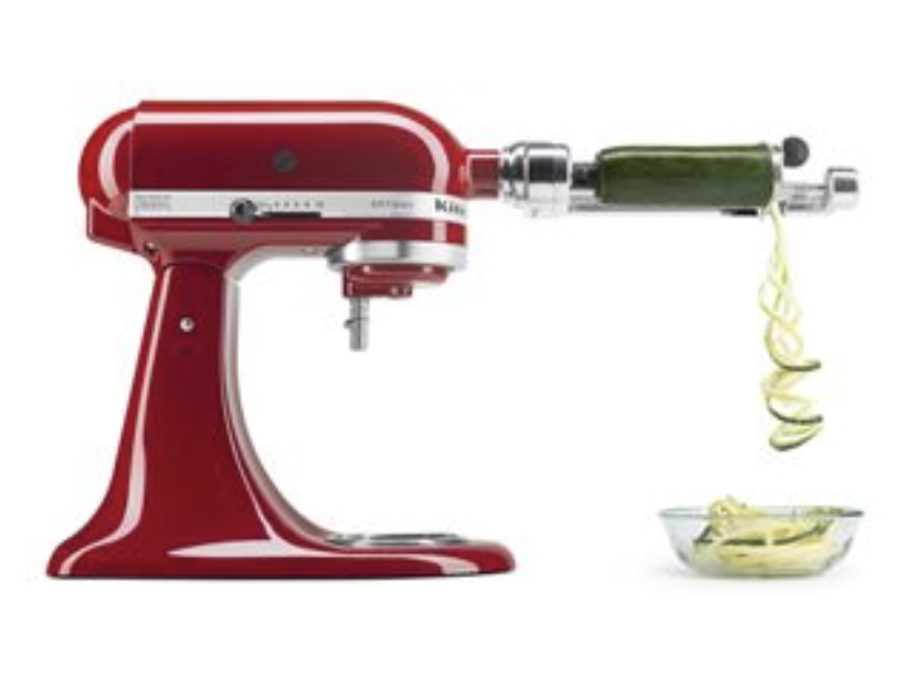 Whether you’re looking to freshen up your classic recipes or craving to try something new, it’s easy to be creative with the KitchenAid® Spiralizer Attachment. This attachment offers the versatility to peel, core, slice and spiralize a variety of fruits and vegetables. Start by spiralizing zucchini, sweet potatoes, even vibrant, earthy beets, or slice fresh apple or pears for a savory dessert.